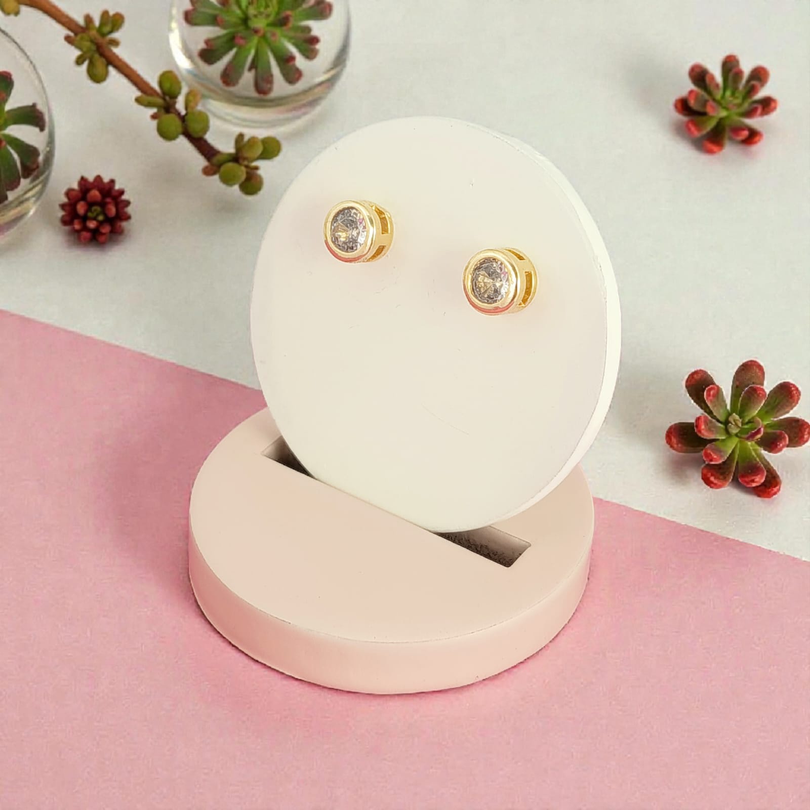 Elegante e atemporal, este brinco fixo apresenta uma pedra redonda de alto brilho cuidadosamente embutida em uma base dourada, trazendo um toque sofisticado e versátil para o seu visual. Seu design minimalista combina com qualquer estilo, sendo perfeito para o dia a dia ou para compor produções mais refinadas.