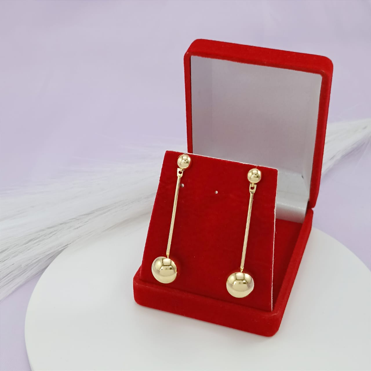 Modelo: Brinco pendurado palito com bola lisa