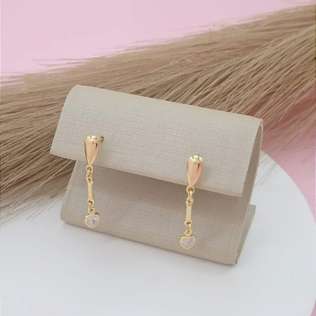 Modelo: Brinco pendurado palito diamantado com pedra coração