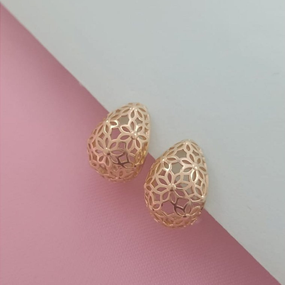 Modelo: Brinco fixo gota vazada de flores lisa