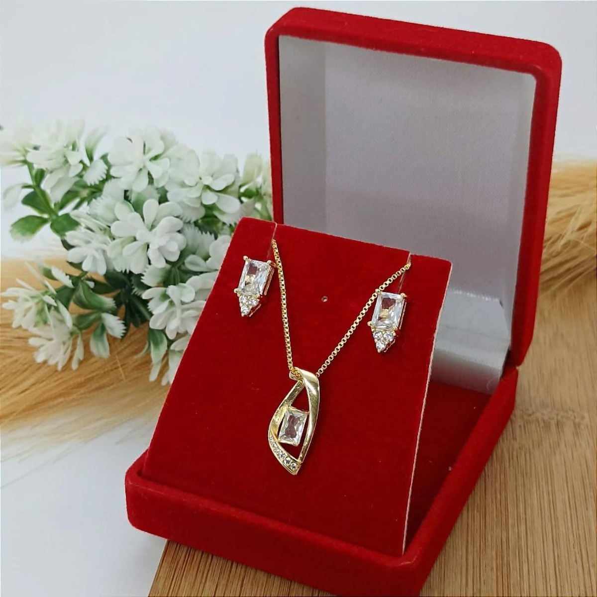 Este conjunto une o design clean do formato retangular com o brilho sutil das pedras mini, criando uma peça moderna, delicada e atemporal. O acabamento liso transmite sofisticação, enquanto os pequenos pontos de luz adicionam charme e leveza ao visual.