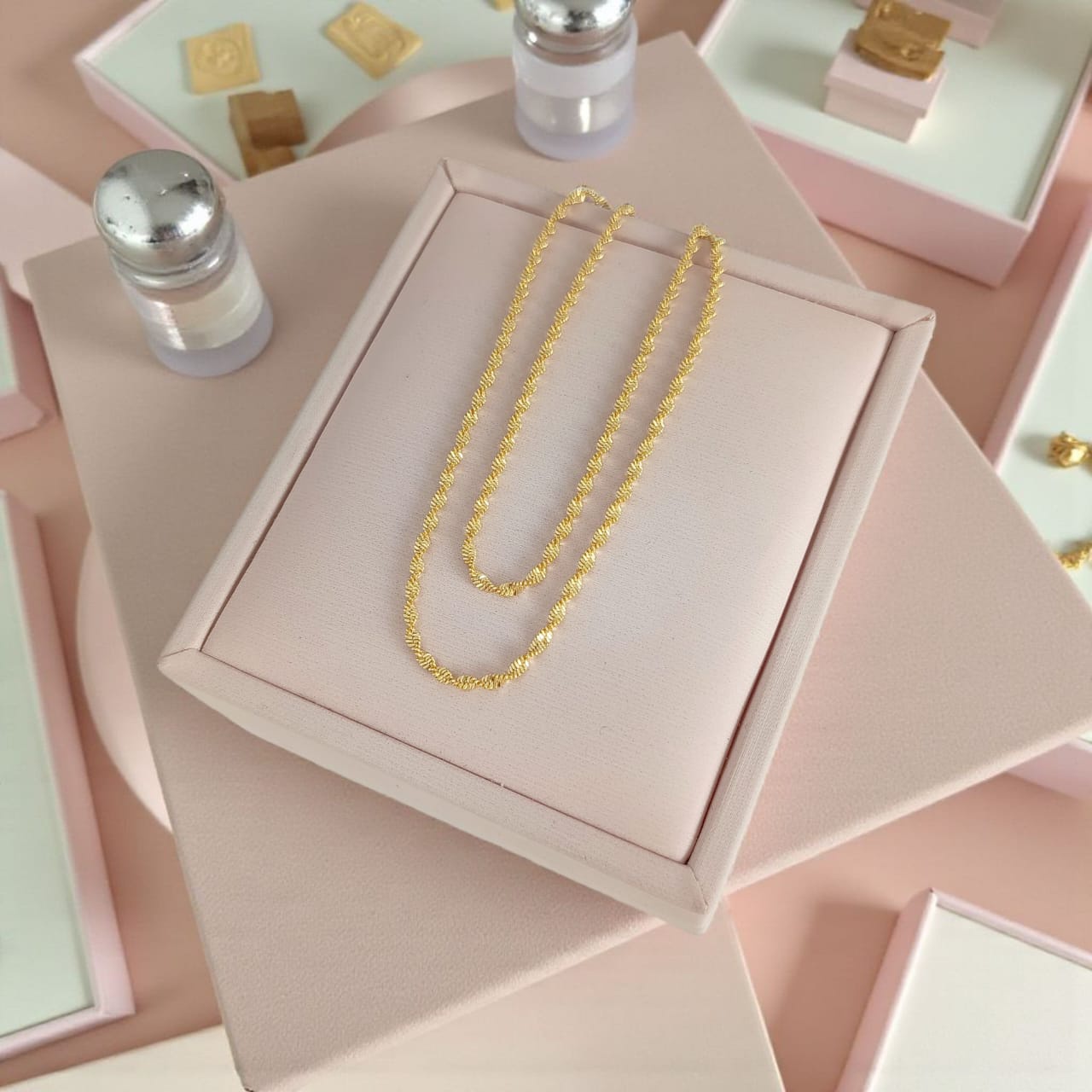 Imponente e cheia de estilo, a Corrente Elo Chato Importado Torcido é uma peça que une elegância e personalidade em um só design. Seus elos achatados e levemente torcidos criam um efeito visual sofisticado e moderno, refletindo a luz com um brilho intenso que valoriza qualquer look.