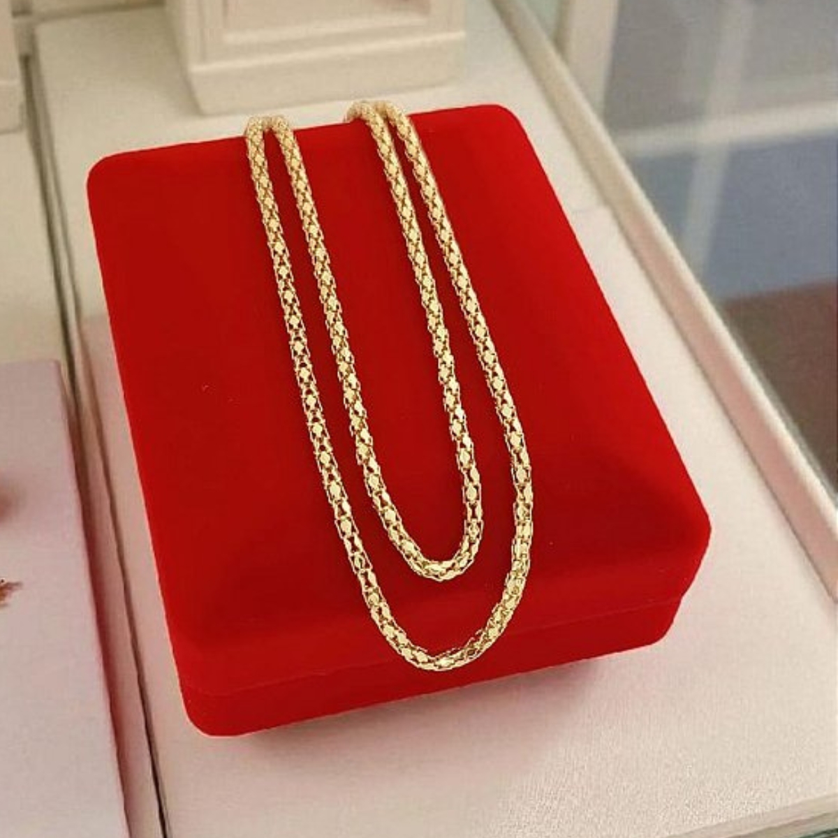 Esta corrente banhada a ouro é o toque perfeito de sofisticação e brilho para qualquer ocasião. Seu design de elos trabalhados reflete a luz de forma encantadora, destacando o acabamento refinado e o banho de ouro de alta qualidade.