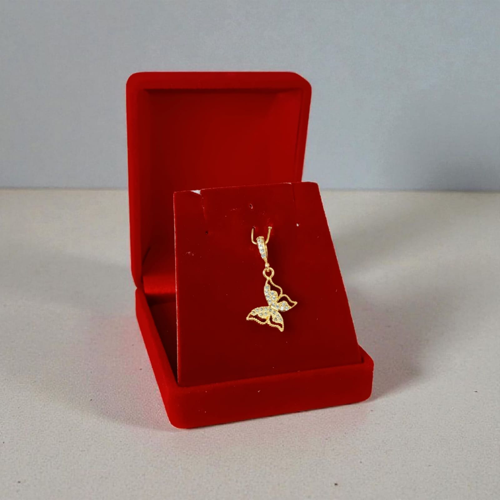 Pingente Borboleta Elegante em banho de ouro, com design vazado nas asas e cravação de microzircônias. Uma peça sofisticada que simboliza a transformação e liberdade. Brilho garantido para o seu look!