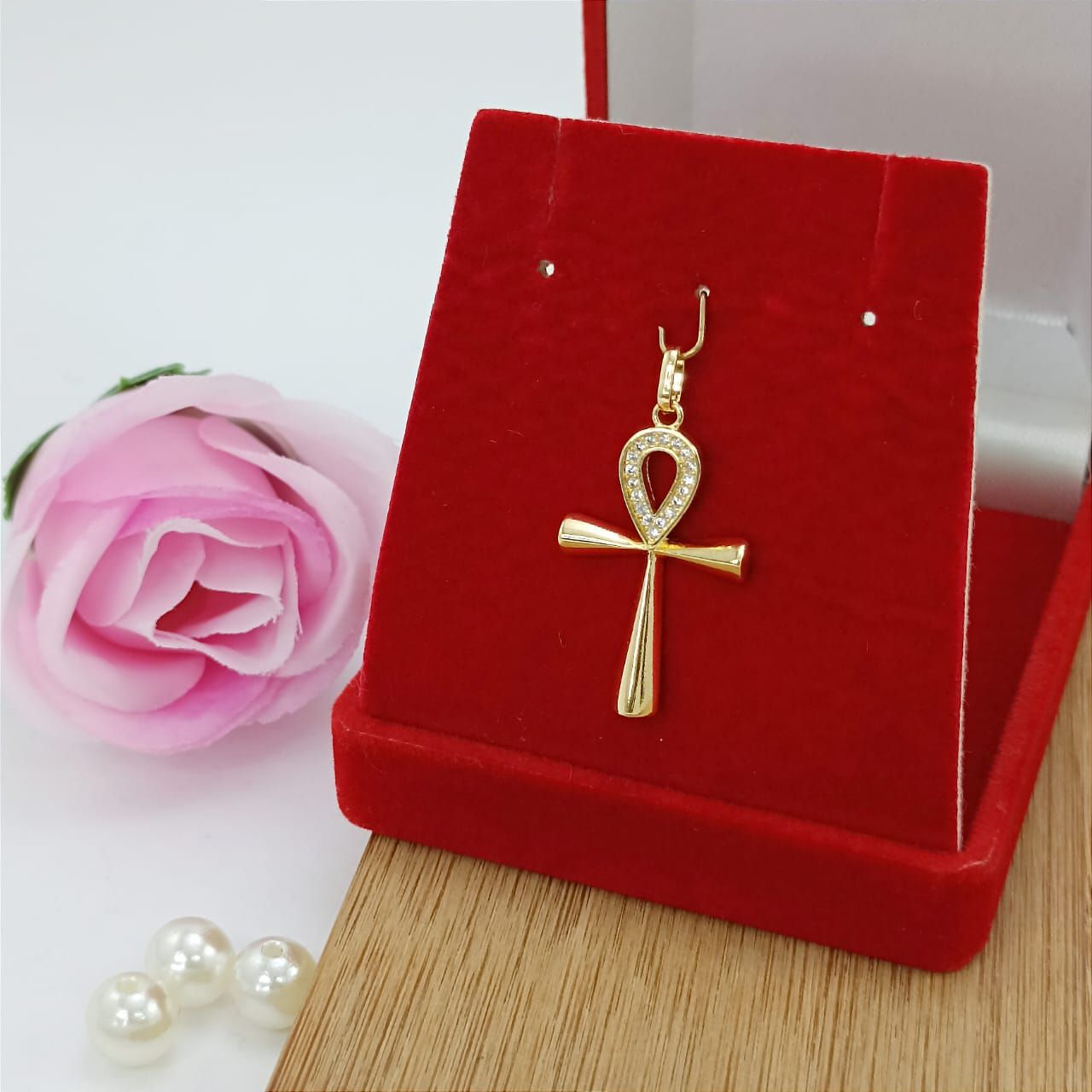 Modelo: Pingente Cruz ansata lisa com pedras mini