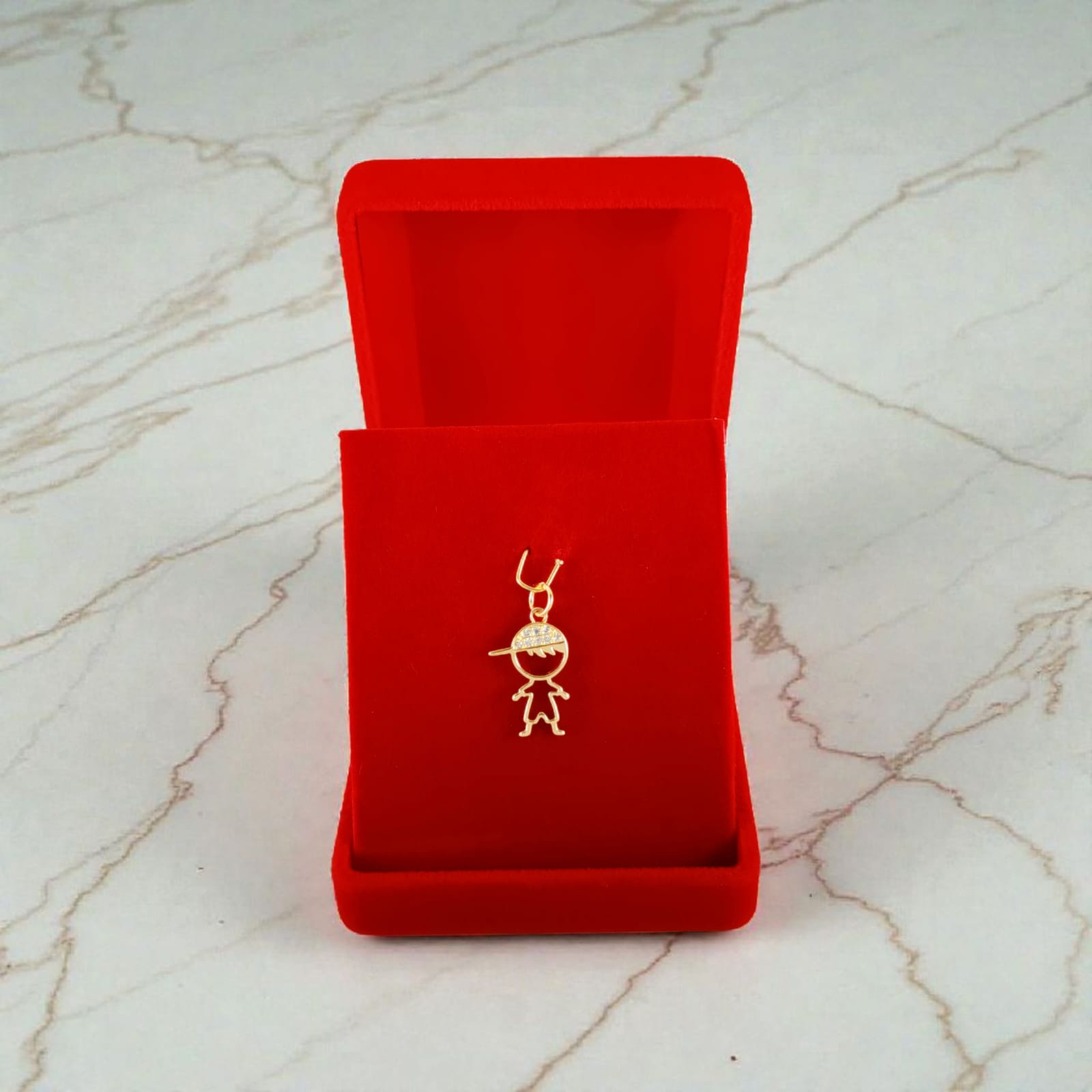 Este modelo em formato de menino estilizado, banhado a ouro, traz um design moderno e leve, com acabamento vazado que valoriza cada detalhe da peça. O destaque fica por conta do boné cravejado com microzircônias, que adiciona brilho delicado e um toque de personalidade.