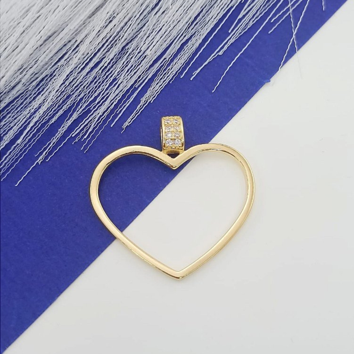 Este pingente em formato de coração vazado, banhado a ouro, é a escolha perfeita para expressar amor e leveza no dia a dia. Seu design minimalista realça a beleza da peça, enquanto o detalhe superior com acabamento texturizado adiciona um toque de brilho sutil e elegante.