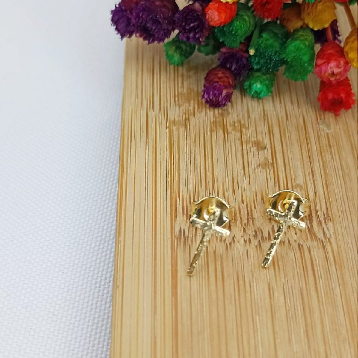 Com um design marcante e cheio de significado, este brinco banhado a ouro traz o símbolo da cruz em um formato trabalhado e detalhado, que une estilo e espiritualidade. A peça destaca-se pelo acabamento delicado e pelo brilho sofisticado do dourado, sendo perfeita para quem busca acessórios com personalidade e fé. Ideal para compor looks modernos com um toque de elegância e simbolismo.